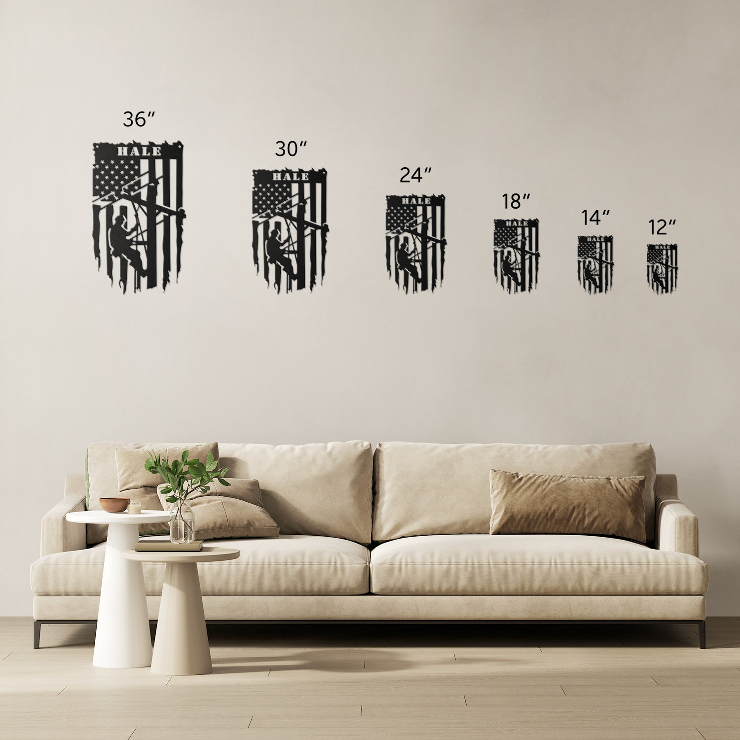 • 6 Sizes - 36", 30", 24", 18", 14", 12" *Selected size is based on the maximum height or width of the sign depending on physical orientation