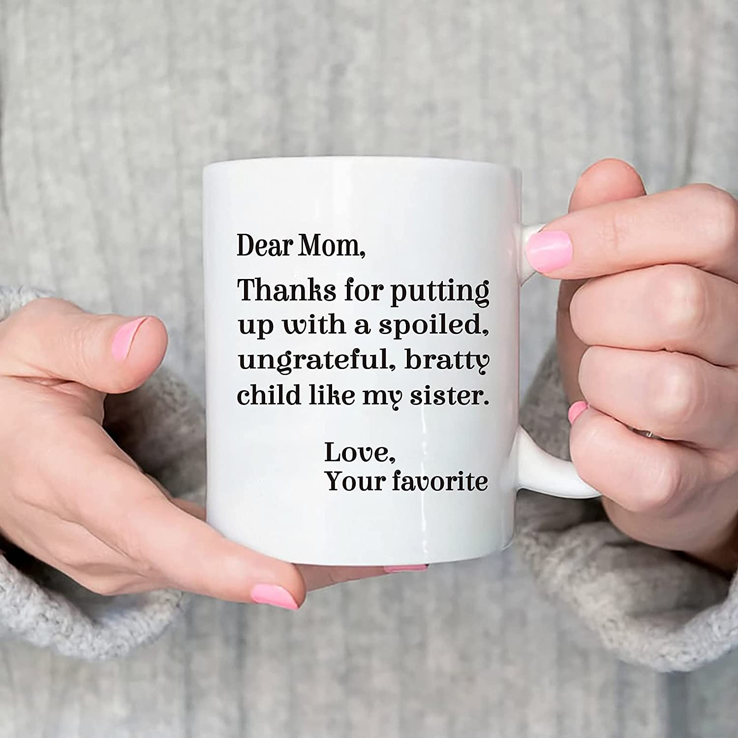 Mom Coffee Mug, Dear Mom Thanks for Putting Up With a Spoiled Child Like My Sister Mug, Mothers Day Gifts for Mom from Daughter Son, Funny Coffee Mug